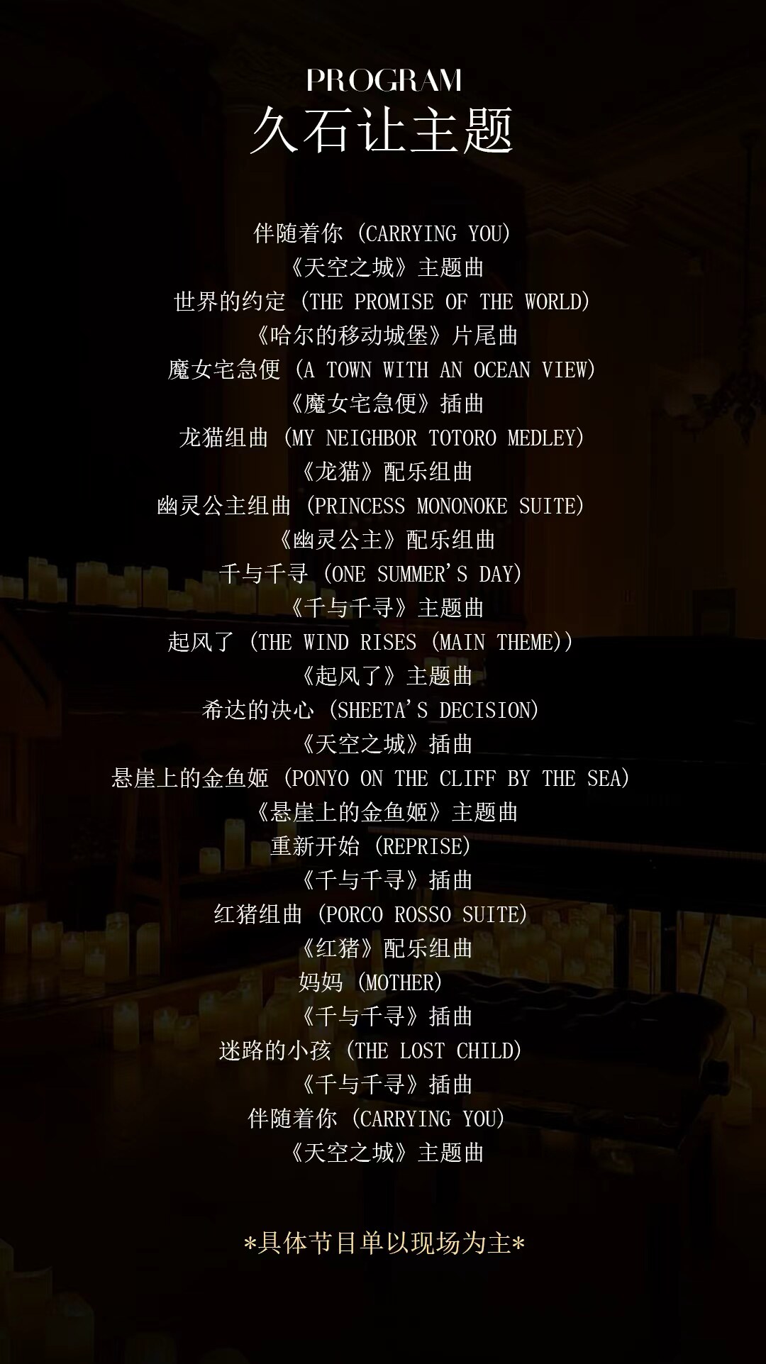 烛光音乐会 · 唯美浪漫氛围--《爱乐之城》《我心永恒》《天空之城》|家庭亲子|约会打卡