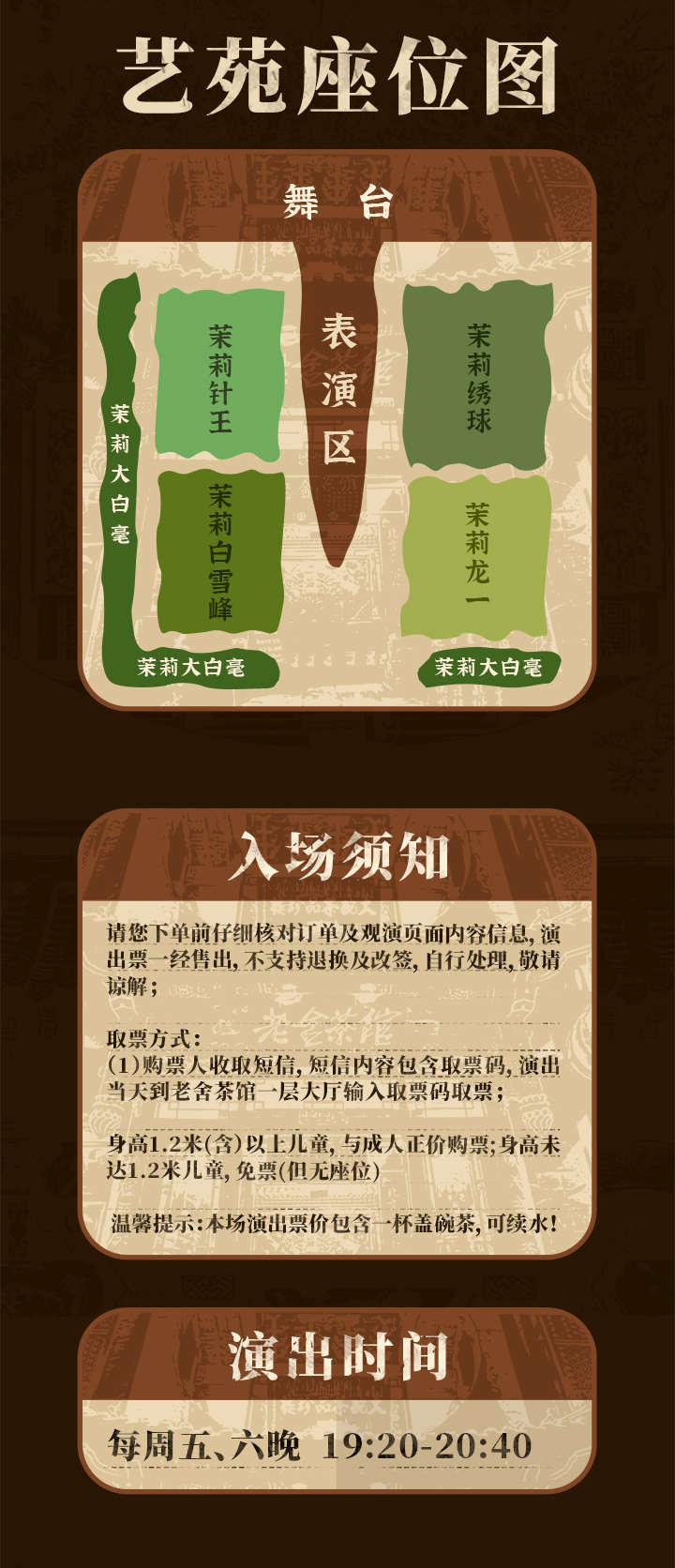 1.2米及以上持票入场,1.2米以下免票(无座位,需大人陪同)